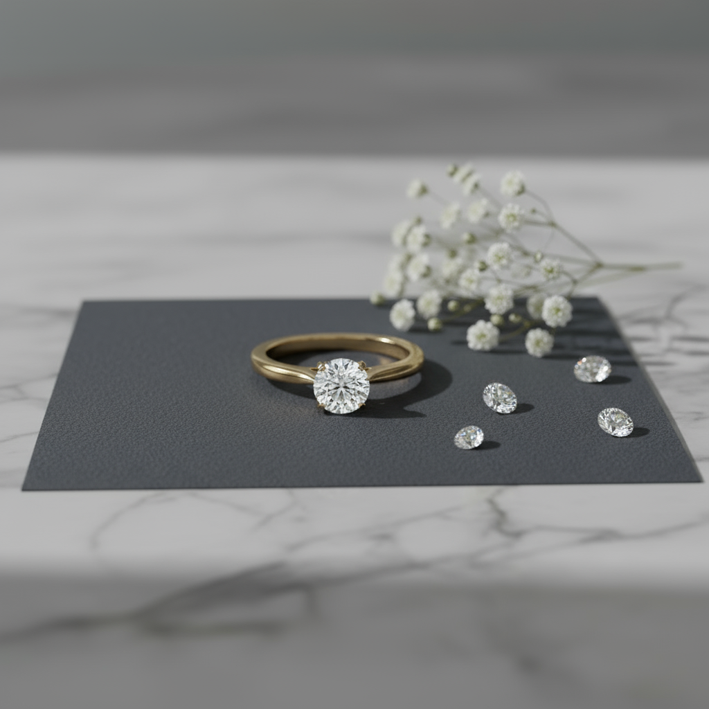 This elegant ring features a stunning 1.5-carat lab-grown round-cut stone, known for its timeless brilliance and classic appeal. The stone’s VVS clarity and D color ensure exceptional sparkle and purity, catching the light from every angle. Set in tab prongs, the stone is securely held while allowing maximum exposure to showcase its radiant beauty. The sleek 2mm band complements the design with a refined, minimalist touch. A perfect symbol of love and sophistication, this ring offers both timeless elegance and modern craftsmanship.