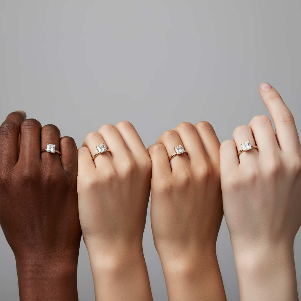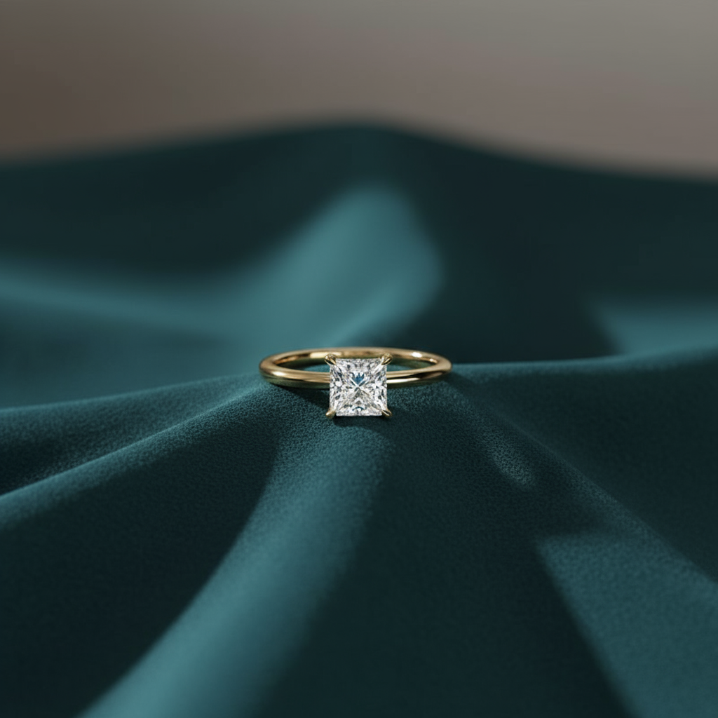 This stunning ring features a 1.5-carat lab-grown princess-cut stone, known for its sharp, geometric lines and brilliant sparkle. The stone’s VVS clarity and E color ensure a flawless and radiant appearance. Set on a sleek 2mm band, this design offers a clean, minimalist aesthetic that allows the striking princess-cut stone to take center stage. A timeless and sophisticated piece, this ring is the perfect symbol of love and commitment, blending modern elegance with enduring beauty.